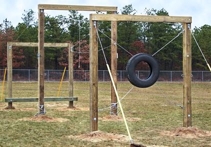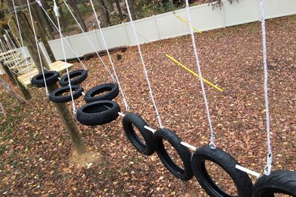 The Low Ropes courses generally consist of fixed or moveable obstacles that are no more than 6 feet off the ground and require no special safety equipment outside of spotting.